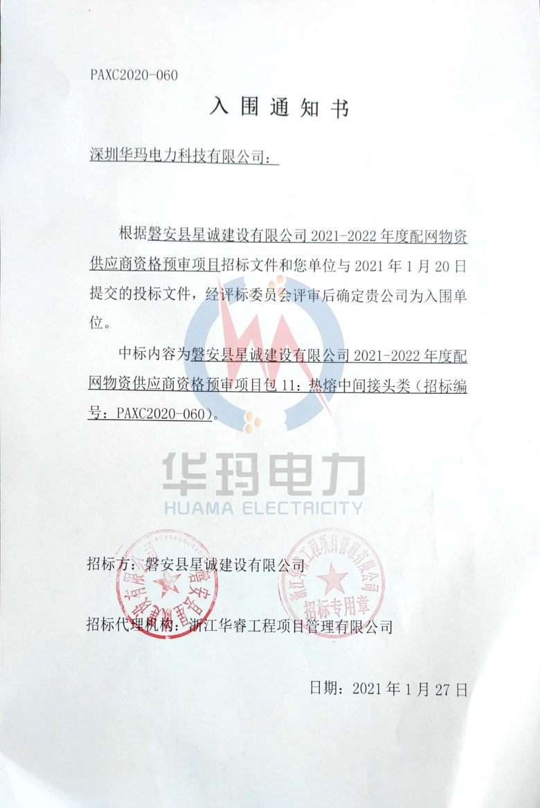 恭喜!华玛又中出一地方国网电缆熔接头标包